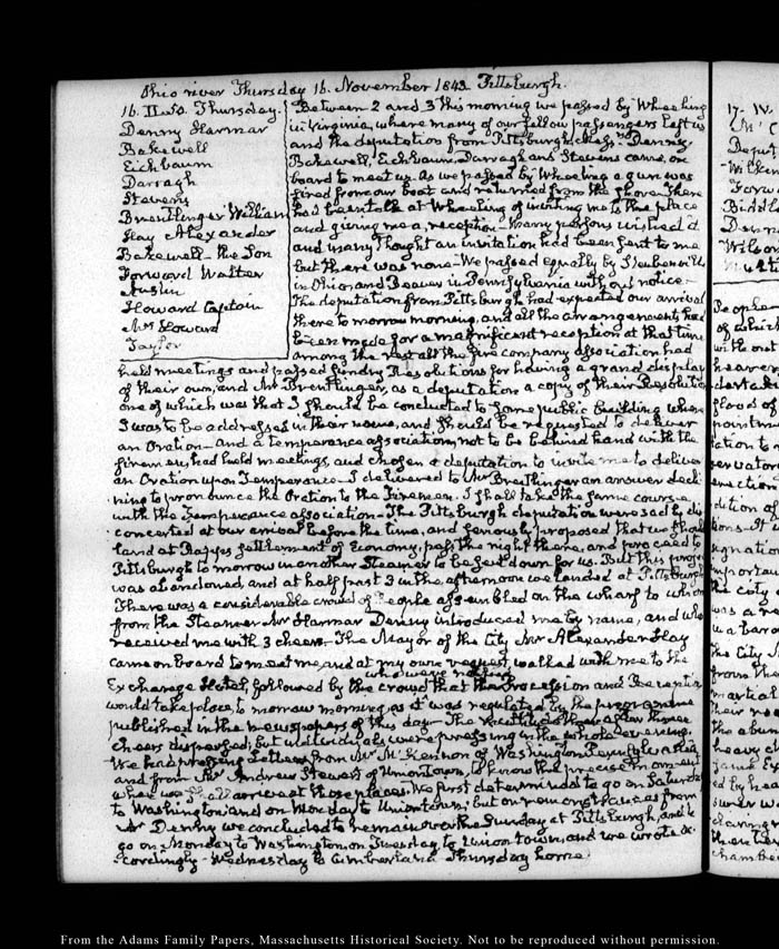 View full, authoritative transcriptions with page images of the diaries at John Quincy Adams Digital Diary part of the Primary Source Cooperative at the MHS.