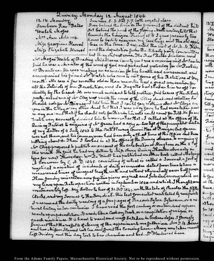 View full, authoritative transcriptions with page images of the diaries at John Quincy Adams Digital Diary part of the Primary Source Cooperative at the MHS.