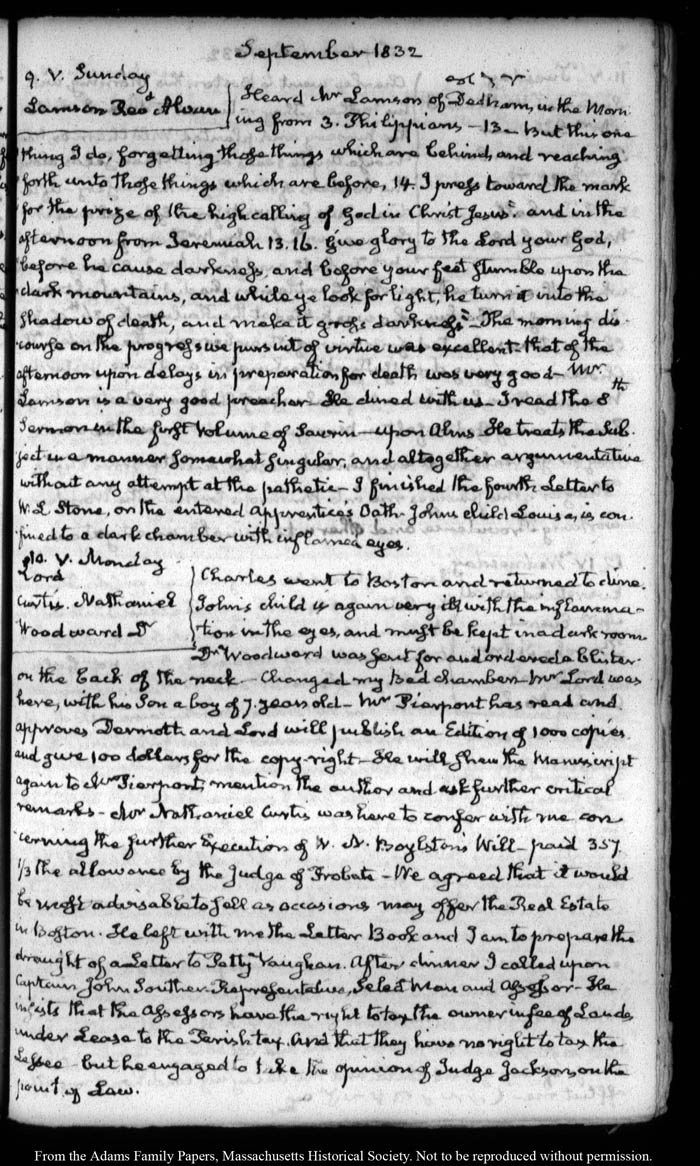 View full, authoritative transcriptions with page images of the diaries at John Quincy Adams Digital Diary part of the Primary Source Cooperative at the MHS.