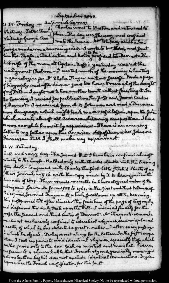 View full, authoritative transcriptions with page images of the diaries at John Quincy Adams Digital Diary part of the Primary Source Cooperative at the MHS.