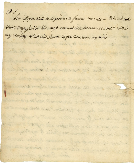 Sir if you will be So good as to favour me with a Blank book I will transcribe