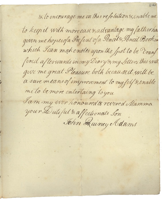 John Quincy. Letter to Abigail Adams, September 27, 1778. Adams Family Papers,