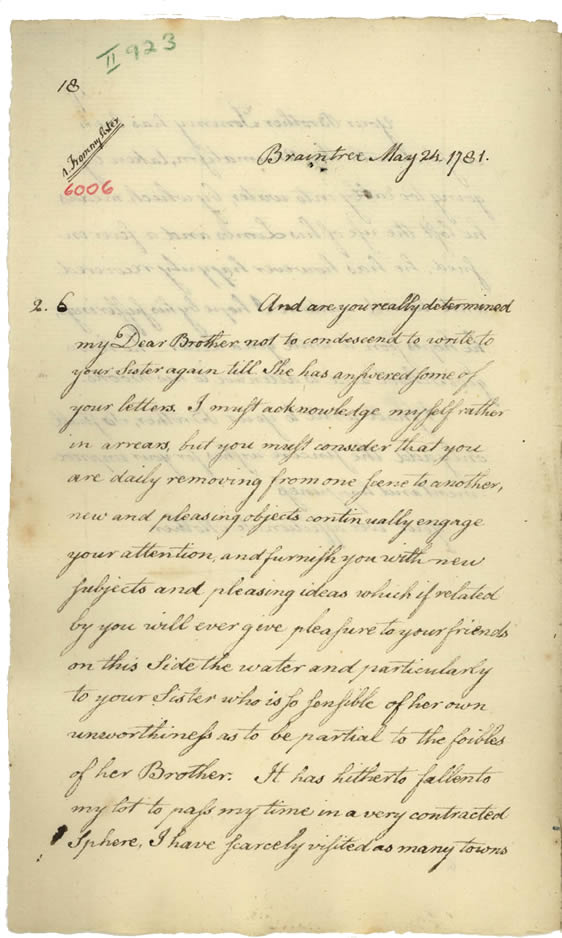 Abigail 2d. Letter to John Quincy Adams, May 24, 1781. Adams Family Papers,