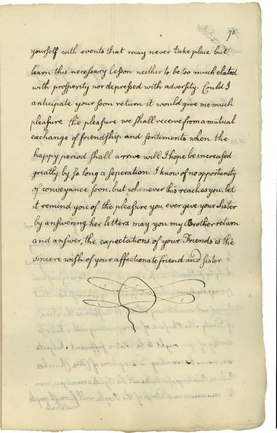 by answering her letters. May you my Brother return and answer the expectations