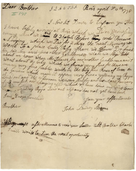 John Quincy. Letter to Thomas Boylston Adams, April 11,1778. Adams Family