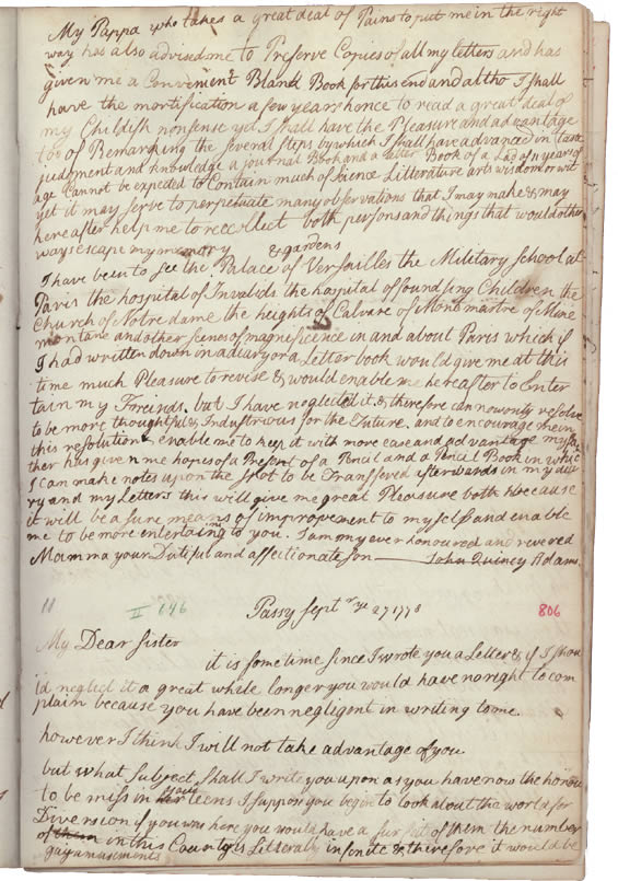 John Quincy. Letter to Abigail Adams 2d, September 27, 1778. Adams Family