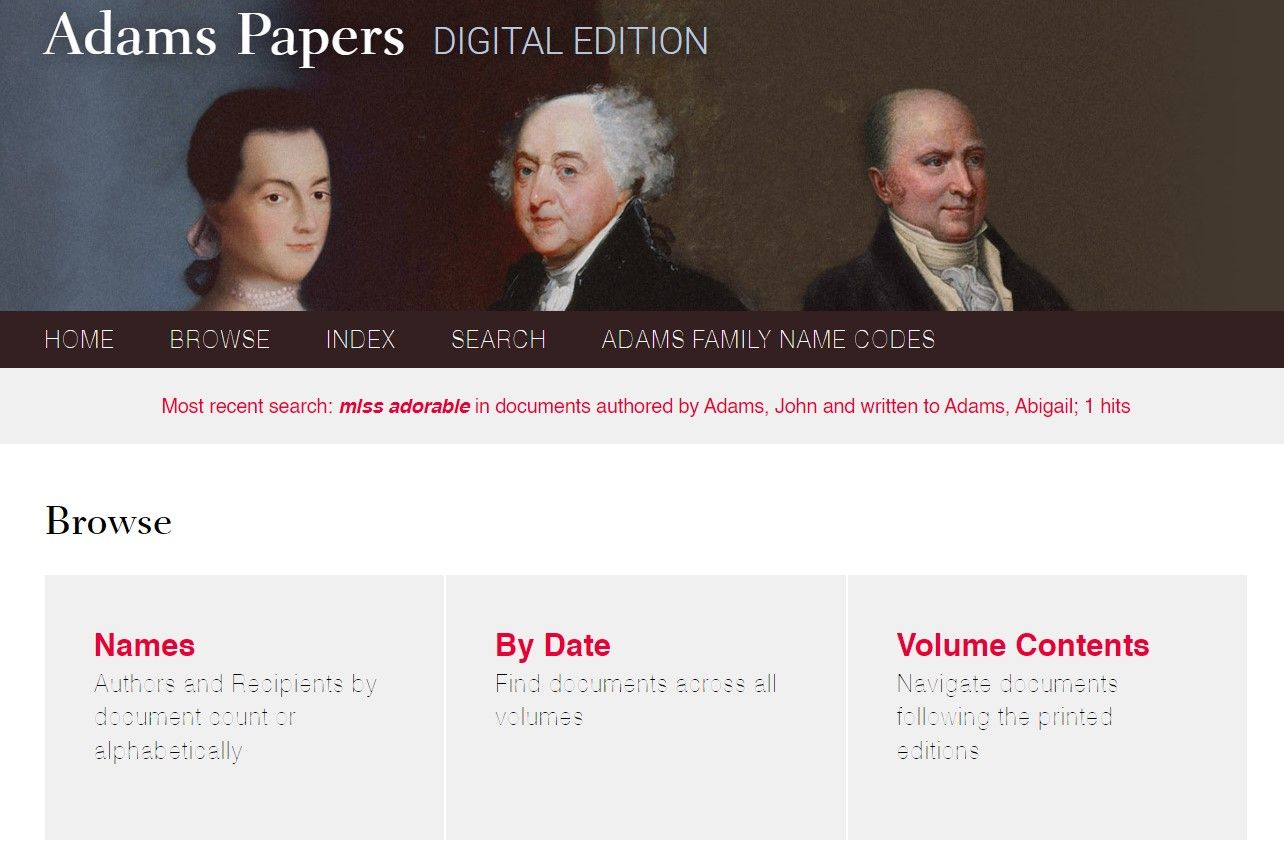 The conversion of previously published print volumes of The Adams Papers to online presentation, including verified transcriptions, full annotation, indexes, and a cumulative search tool.