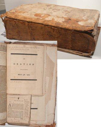 The newly-launched website presenting MHS’s collection of Harbottle Dorr, Jr.’s annotated newspapers includes transcriptions of the indexes he created for each of the four volumes he assembled. The task of transcribing these indexes proved inspirational and provoked inquiry. The Massachusetts Historical Society has held the first three volumes, covering the years 1765-1771, for many years. The first volume contained no extra material other than a brief two-page Appendix. However, in both Volumes Two and Three Dorr included contemporarily published pamphlets on topics related to the articles he annotated.