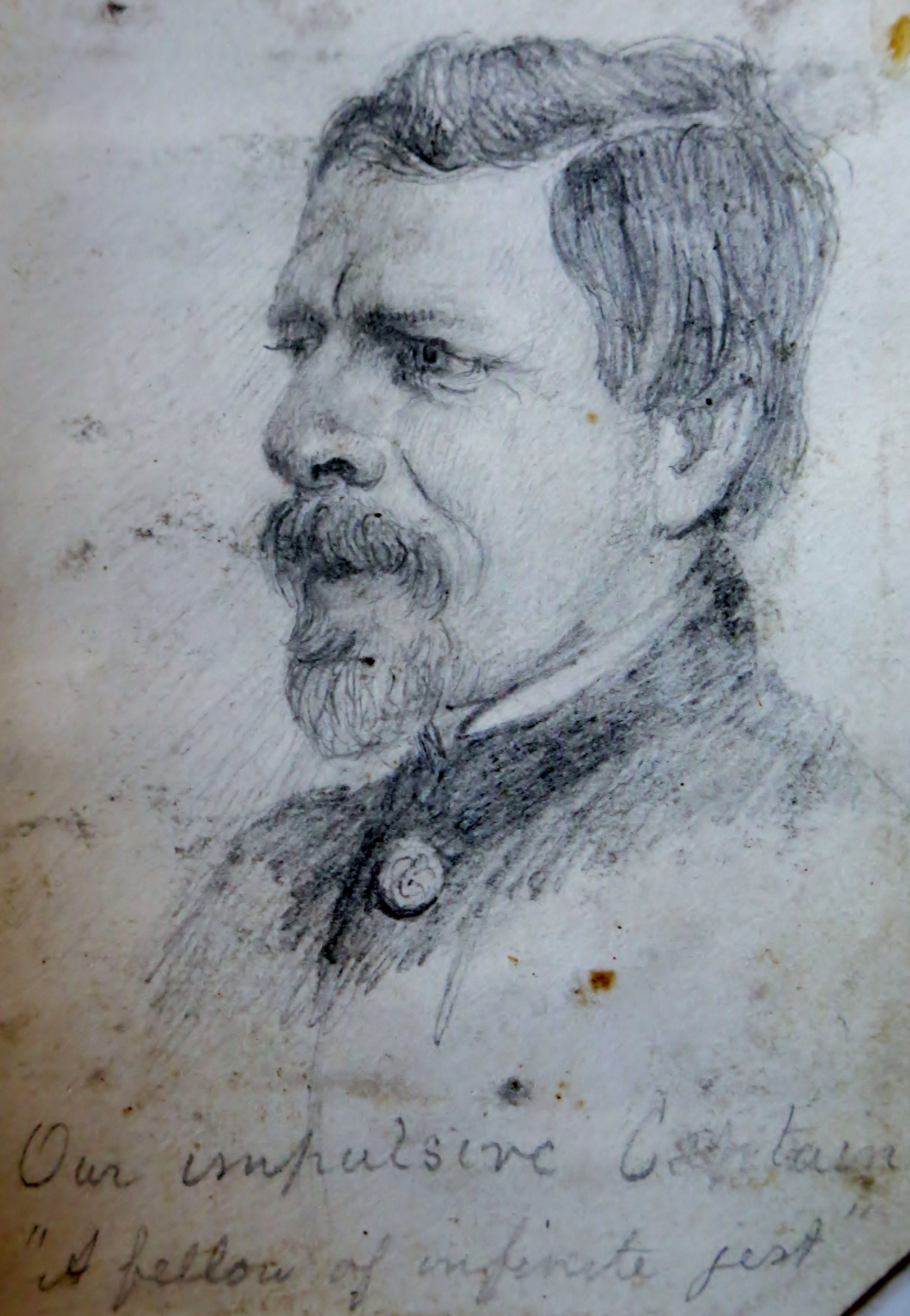 Eben W. Fiske (1823-1900) served during the Civil War as a Captain in the 13th Regiment Massachusetts Volunteer Infantry in Virginia. As part of the Fiske family papers here at the MHS, we hold several of his small notebooks which contain clippings from newspapers and a variety of pencil drawings. For ease of description, I split his drawings into two very broad categories: Civil War drawings and Other.