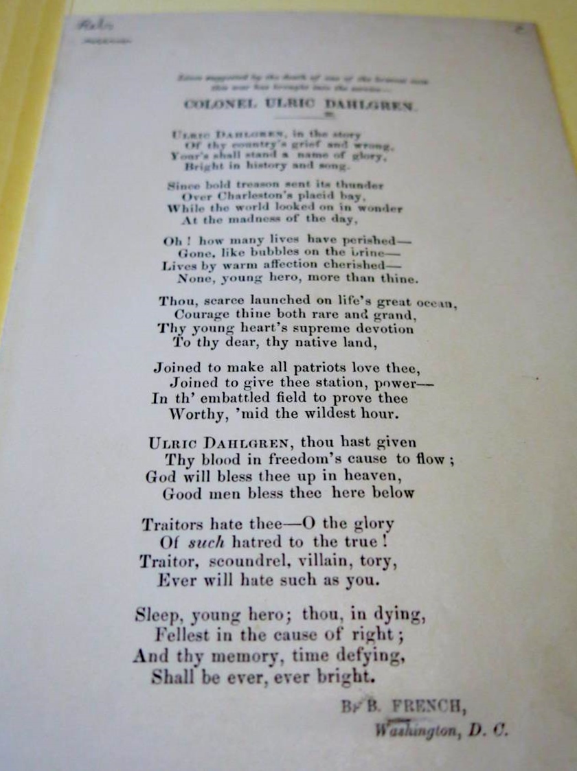B.B. French’s “Lines suggested by the death of one of the bravest men this war has brought into the service — Colonel Ulric Dahlgren”