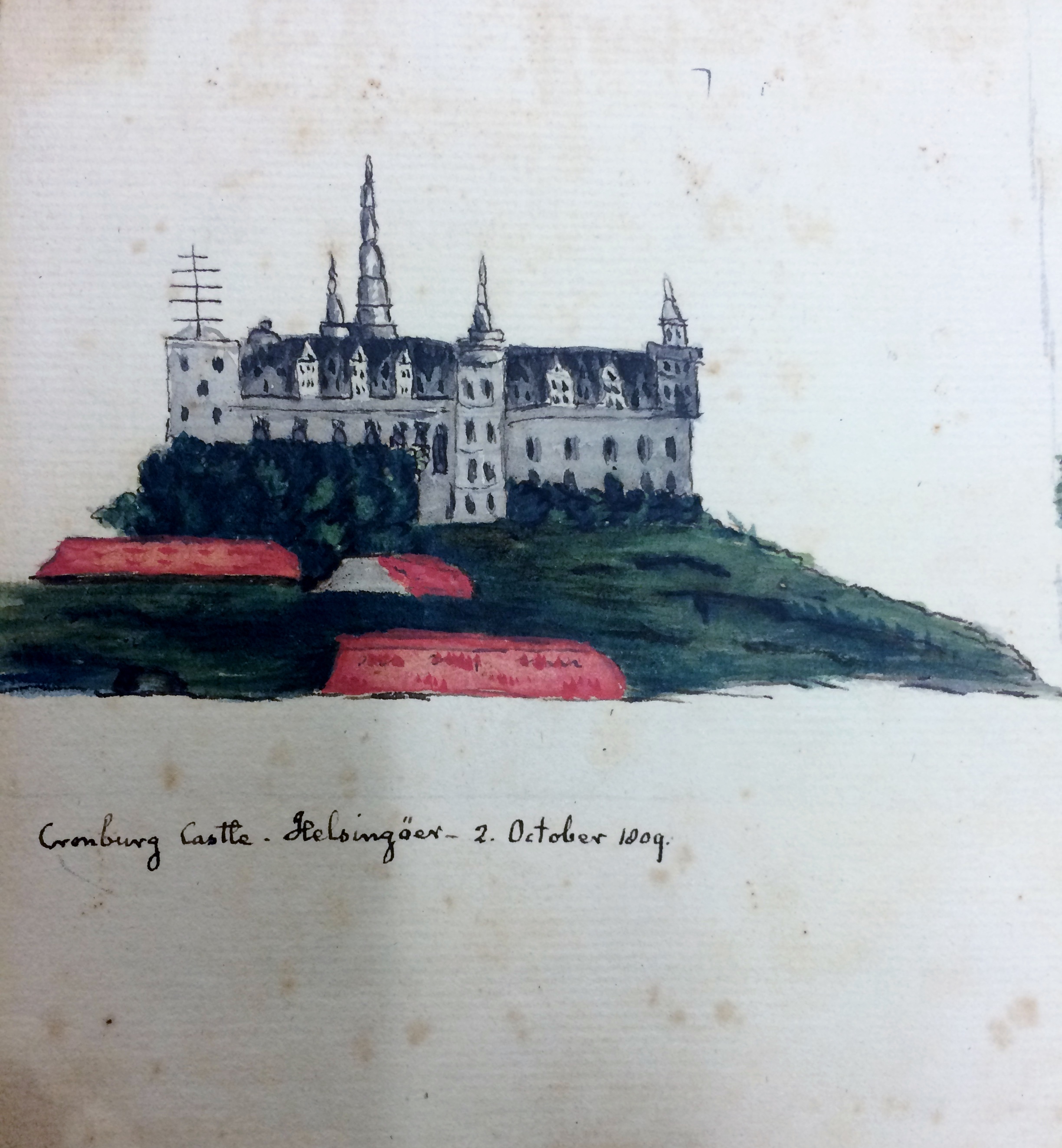 Kronburg Castle, Helsingør, 2 October 1809, ink and watercolor picture in John Quincy Adams, Miscellany 5, Adams Papers.