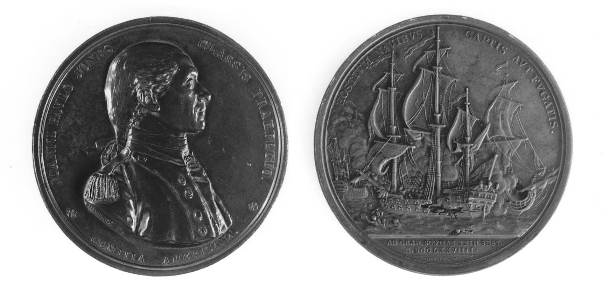 While they did not become close friends, John Paul Jones did offer JA his bust, and to the end of his life, JA remembered Jones as intelligent, a good letter writer, and “gentlemanly in his dress & manner.” As both men regarded the American Navy as central to the success of the nation, Adams never failed to respect Jones’ naval ability or the “glorious success” of Jones’ famous capture of the British frigate Serapis, for which the Continental Congress awarded Jones a medal, the first to commemorate a naval victory. A restrike of that medal is housed within the collections of the Massachusetts Historical Society.
