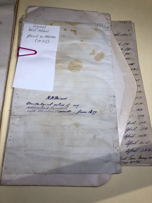 Original wrappings for the warbler relicsRelics from Minot’s 1877 birding expedition with Theodore Roosevelt