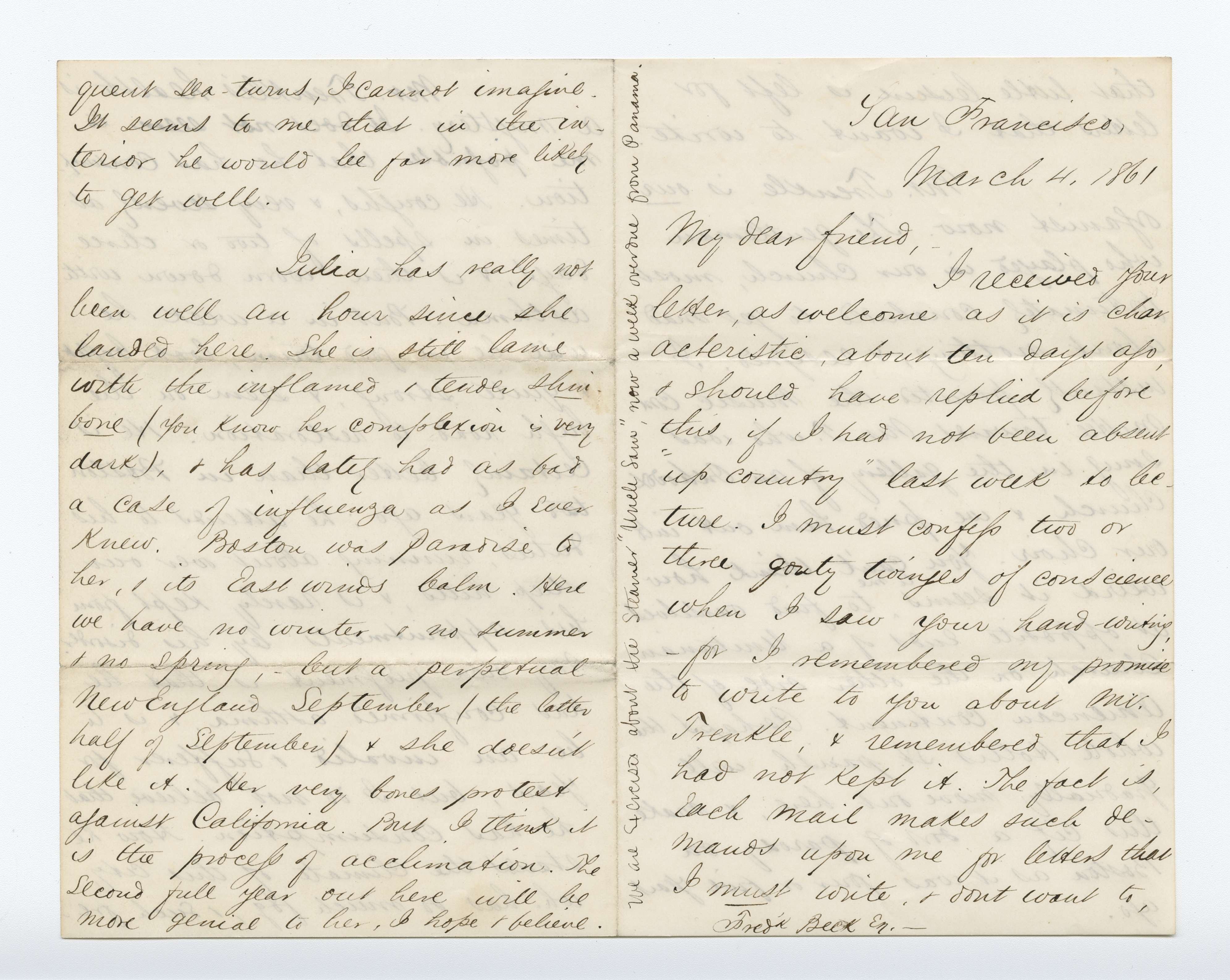 Letter from Thomas Starr King to Frederick Beck, 4 Mar. 1861
