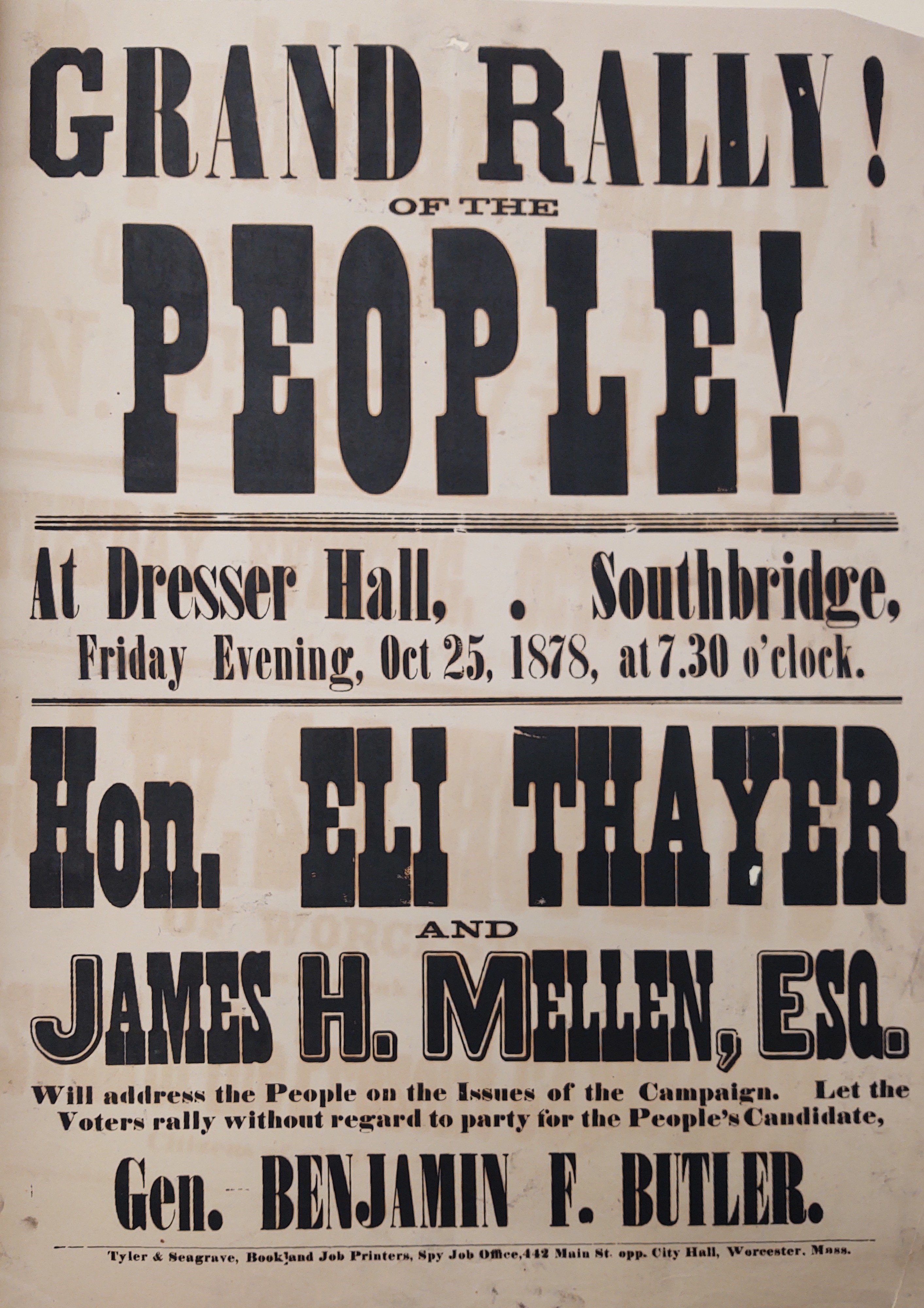 Butler Campaign Rally, with Butler described as the “People’s Candidate”. “Grand rally! Of the people!” Collection of the MHS.