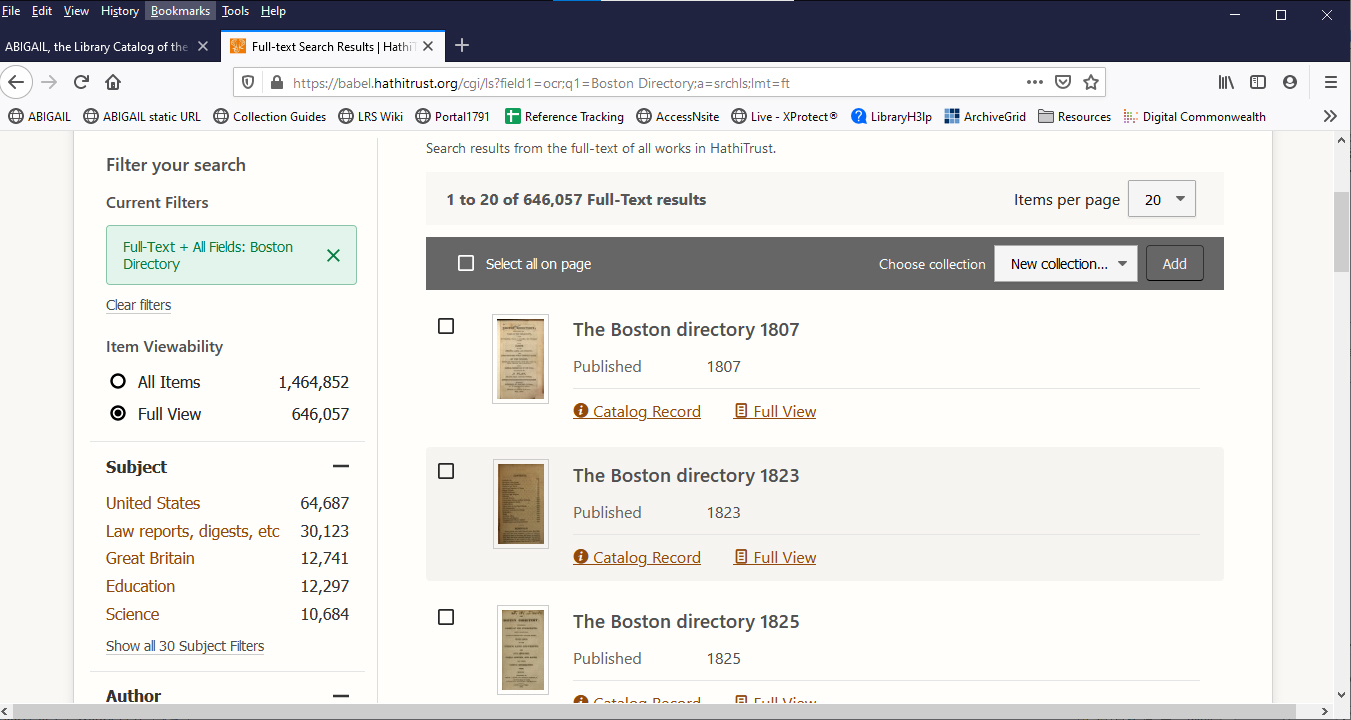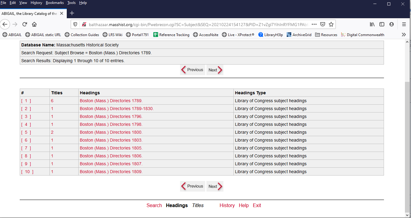 The MHS holds physical copies of Boston city directories from the first publication of the Boston Directory in 1789, into the 20th century: