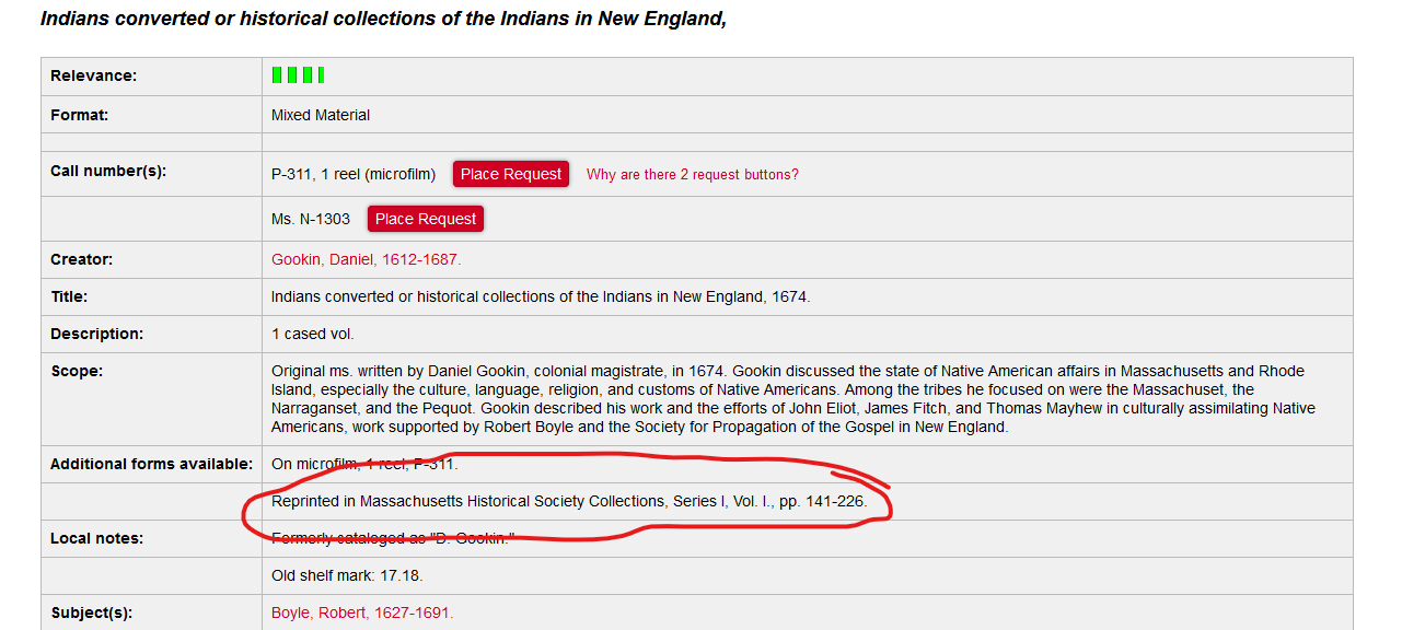 If you find a collection or source in our catalog, check the form “Additional Forms available.” If it has been published in either Collections or Proceedings, it will most likely be indicated there with the series, volume, and page number.