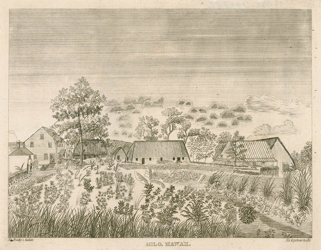 Hilo, Hawaii, engraving by Kepohoni, after Edward Bailey