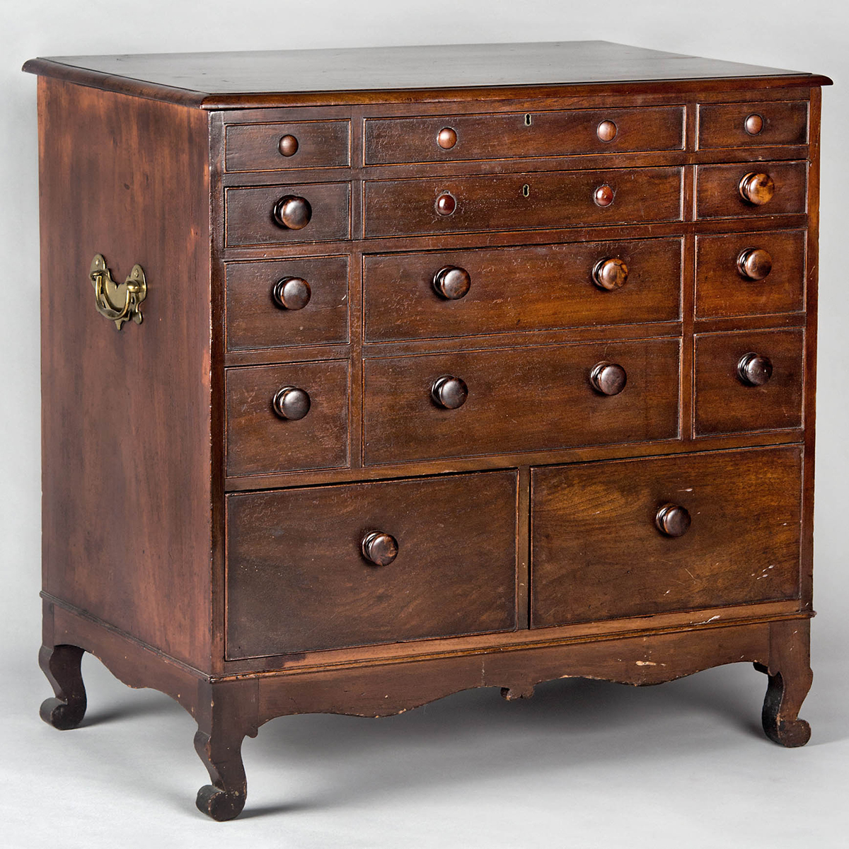 Although American trade with India preceded the Revolution, it was formalized when George Washington sent Bostonian Benjamin Joy as the first US Council to India in 1794. The British East India Company refused to recognize his status. The MHS holds a fascinating object from that exchange, a Sea Chest, made in India, that accompanied Joy on his voyage back home. Read more about Joy and the Sea Chest here: MHS Collections Online: Sea chest belonging to Benjamin Joy.