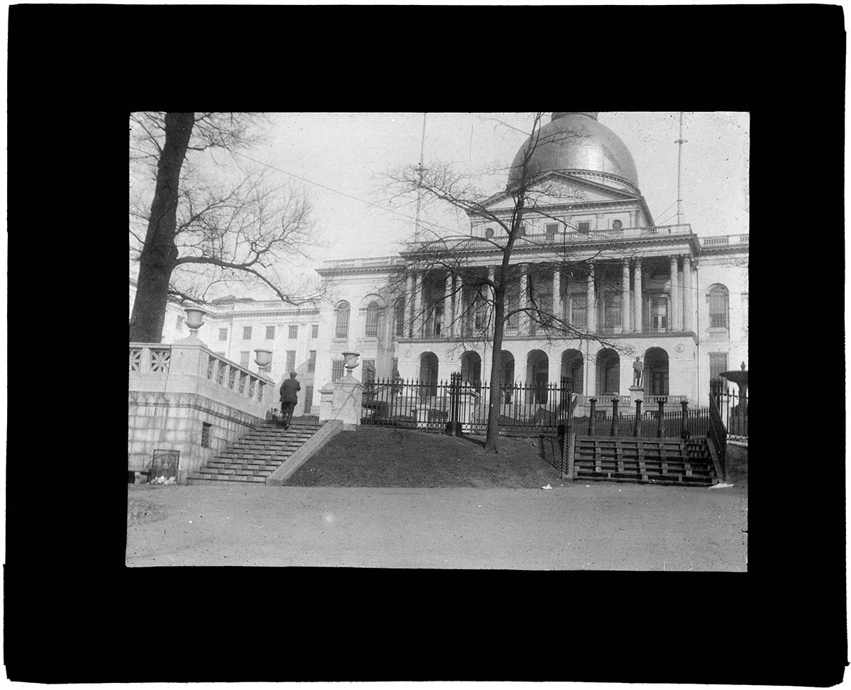 View of part of Boston Common, Boston, Lantern slide possibly taken by Arthur A. Shurcliff, circa 1914.View of State House, Boston, lantern slide possibly taken by Arthur A. Shurcliff, circa 1910s.