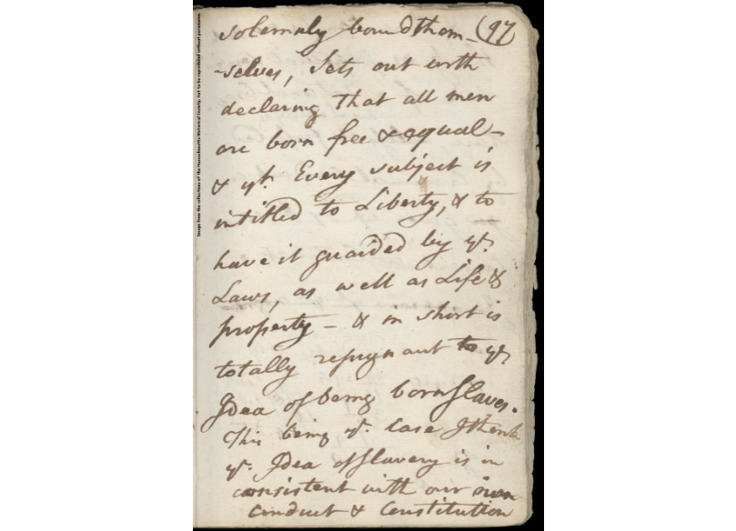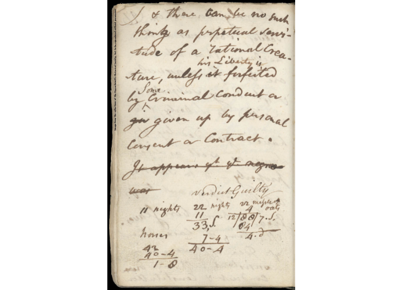 Cushing, William. Legal Notes. Massachusetts Historical Society. MHS Collections Online: Legal notes by William Cushing about the Quock Walker case, [1783] (masshist.org)