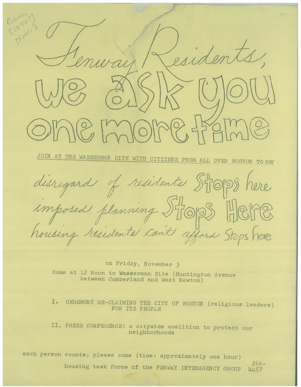 “Charlesgate Park from the corner of Boylston Street and Charlesgate East. Photograph by Anna J. Clutterbuck-Cook, January 2014.”