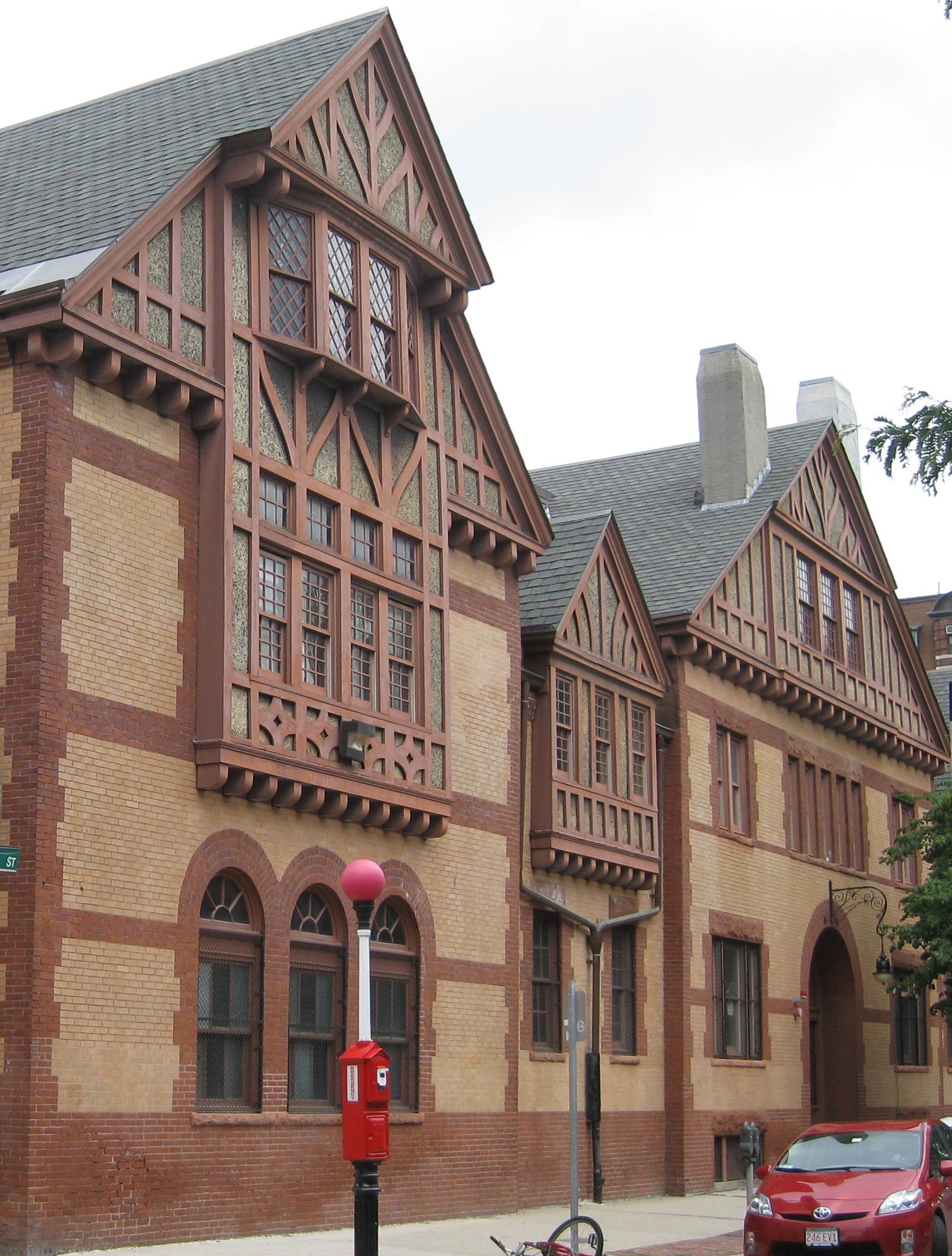 Just think of the variously colored steeples that dot the campus of Harvard in nearby Cambridge; the golden dome of the State House; and of course, the grand brownstones that line Newbury and Beacon Streets and Commonwealth Avenue. One architectural style that is not well represented in Boston, though, is the Tudor Revival style. And yet, just around the corner from the MHS, among the rows of stone and brick apartment buildings, is a fine example of that style.