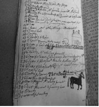 I am still going through what I was able to gather during my visit to MHS, but there was a passage from the logbook of a merchant ship that particularly caught my eye, even from the microfilm machine (William Sturgis Papers, Reel 4). On July 4, 1814, the Boston-based ship Atahualpa was docked at “Whymea Bay” in “Atooi” (on the island of Kauai in what is now Hawai’i). The sailors celebrated the anniversary of American independence, fortified by Madera wine that was “bountyfully supply’d” by another American captain. According to the logbook, the men proceeded to partake in more than a dozen “patriotic Toasts” to a variety of honorees – the memory of George Washington, the American Navy, and the King of Atooi, to name a few. But it was the final four that stood out to me: