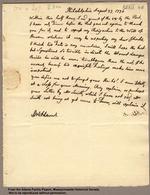 You desire me not to forget your "Herbs." I am totally at a Loss for your Meaning. Pray explain -- or perhaps your Letter by Mr. Smith, which I have not received, Mr. Smith not being as yet come to Town, will explain it.