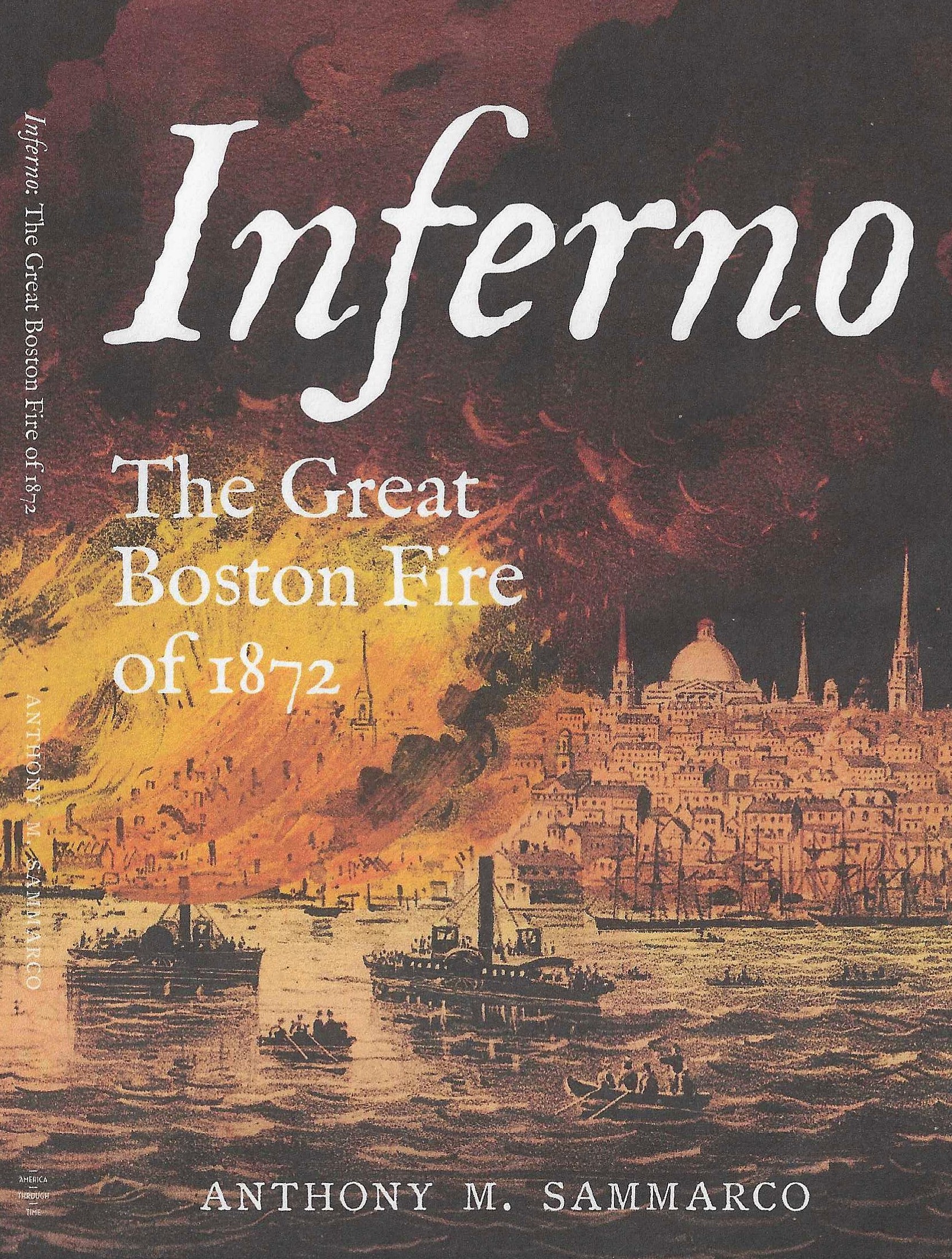 Inferno: The Great Boston Fire of 1872 commemorates the 150th anniversary of a devastating fire that destroyed sixty five acres of land in the city, from Washington Street, between Summer Street and Milk Street, fanning eastward towards the wharves projecting into Boston Harbor. The fire was said to have destroyed 776 buildings in Boston’s downtown, causing over $73 million [1872 dollars or $1,682,000,000.00 in 2022 dollars] in damage, killing an estimated twenty people and led to stricter building regulations in Boston. Fires have always been a constant source of anxiety, but Anthony Sammarco sheds light on the way this inferno was cataclysmic and beyond the comprehension of many people.