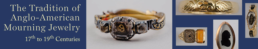 Americans, like their English counterparts, wore rings, brooches, pendants, and other jewels in memory of family and friends. Over the centuries a striking range of design, styles and craftsmanship was employed, from the simple gold bands of the 17th century to the intricate and opulent earring and brooch sets of the late Victorian era. The way memorial jewelry was worn also shifted over the years and these changes tell the story of a culture’s changing sensibility around death and grief. Commemorating the death of a loved one was manifest in a variety of media including broadsides, paintings, portraits, and textiles. This website shows representative examples of the ways in which our ancestors mourned.