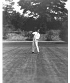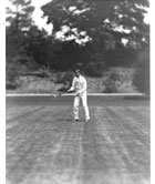 In the summer of 1891, he photographed some of the country's leading lawn tennis athletes in action, including Edward L. Hall (pictured below). Some of these unusually detailed photos eventually appeared in James Dwight's 1893 book, Practical Lawn Tennis.