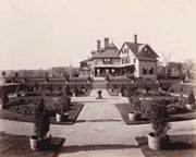 From 1884 through 1893, while Francis Blake developed his interest in the science of photography, he also devoted significant time and energy to refining his home at Keewaydin. In July of 1884, Blake finished renovations on the estate that included terraced gardens, a photography room, machine shop, and private library for his scientific studies. The Cottage, a second group of buildings built a short distance from the main house, also contained two bowling alleys and a ninety-seat theater, in which the Blakes produced plays acted by their friends and neighbors for Boston audiences. Francis Blake was, however, not satisified with such improvements alone, and in 1893, he had the main house "modernized" by encasing it in 32,700 pounds of Perth Amboy brick. Blake photographed both renovations extensively, capturing the transformations of Keewaydin in strikingly detailed images.