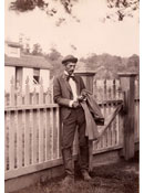 Francis Blake developed his interest in photography by photographing his friends and family. The portraits below of his wife's cousin, Henry Silas Payson, and his friend, Boston actor Henry Clay Barnabee, reveal Blake's concern with realism and a lack of formalism that was unique to nineteenth-century portraiture. Blake used the 'instantaneous photography' with which he captured Barnabee's antic facial expressions to also photograph his son, Benjamin Sewall Blake, jumping above the lawn of Keewaydin.