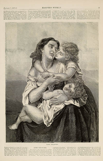 Americans expected women, especially middle- and upper-class white women, to care for their homes and children. Popular pictures like this engraving, "Home Treasures", from the illustrated newspaper Harper’s Weekly promoted this gendered ideal. American women were supposed to be pious mothers who submitted to their husbands. Married leaders often went by their husbands’ names to emphasize that they believed their husbands represented them.