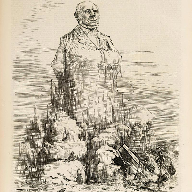 While Nast was based in New York, he drew for a national audience. There were Massachusetts political figures tarnished by corruption—Benjamin F. Butler in particular—who were too (un)appealing not to caricaturize. In his cartoons, Nast also called out the hypocrisy of liberal reformers including Charles Francis Adams, who was depicted as the iceberg upon which Massachusetts Democrats wrecked in 1876.