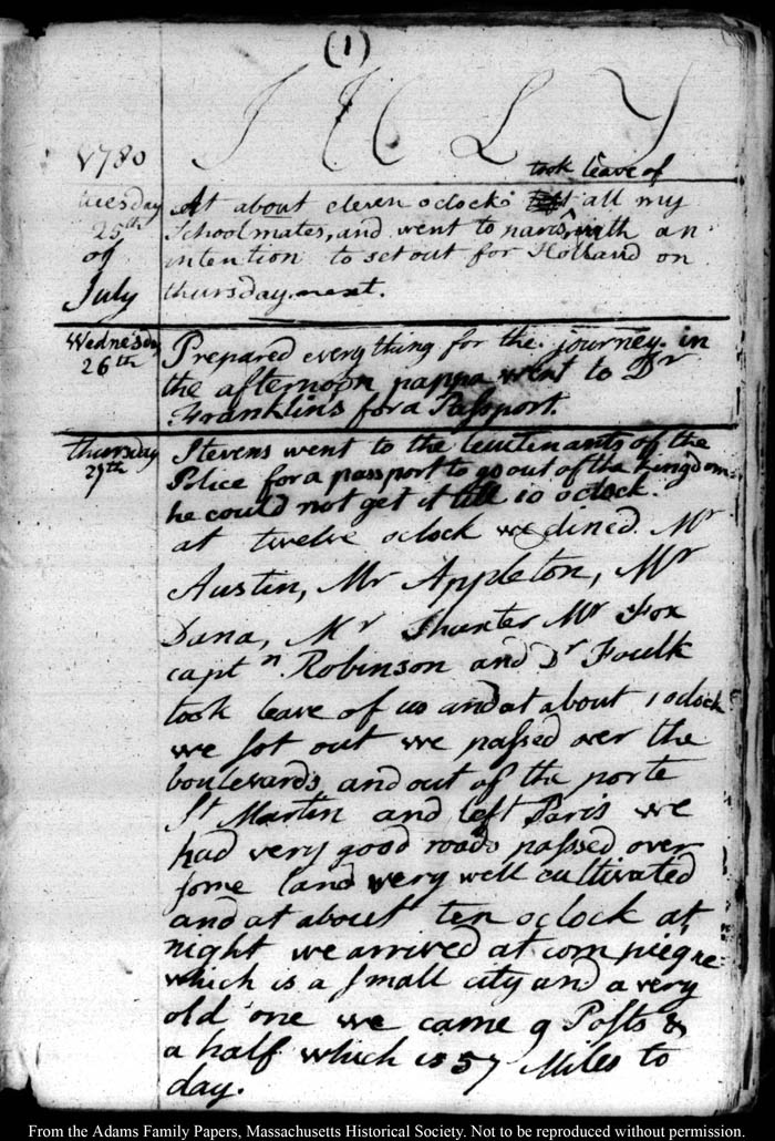 John Quincy Adams diary 3, 25 July 1780 - 30 September 1780, page 1