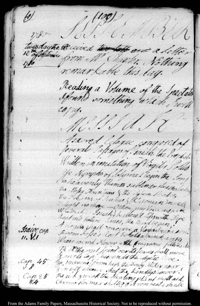 John Quincy Adams diary 3, 25 July 1780 - 30 September 1780, page 100