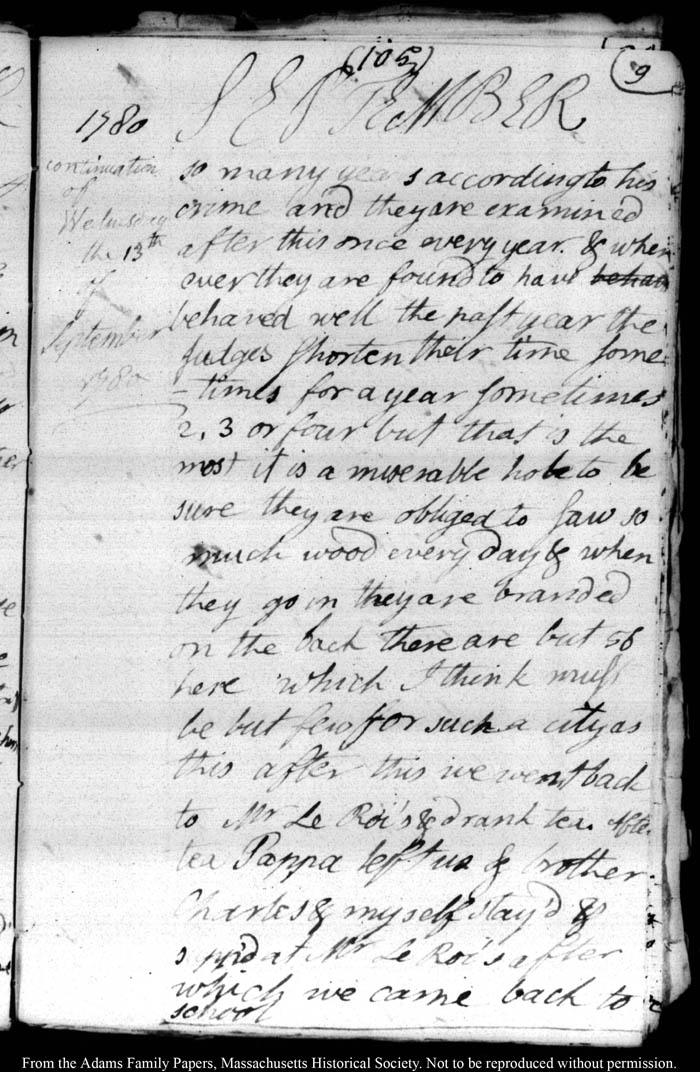 John Quincy Adams diary 3, 25 July 1780 - 30 September 1780, page 105