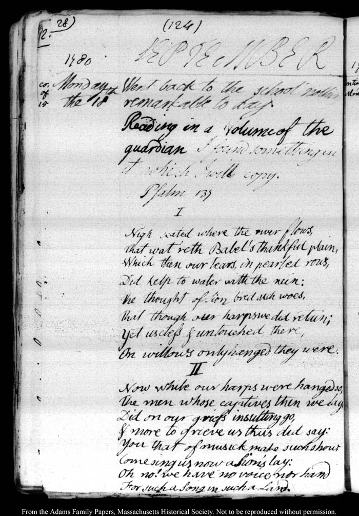 John Quincy Adams diary 3, 25 July 1780 - 30 September 1780, page 124