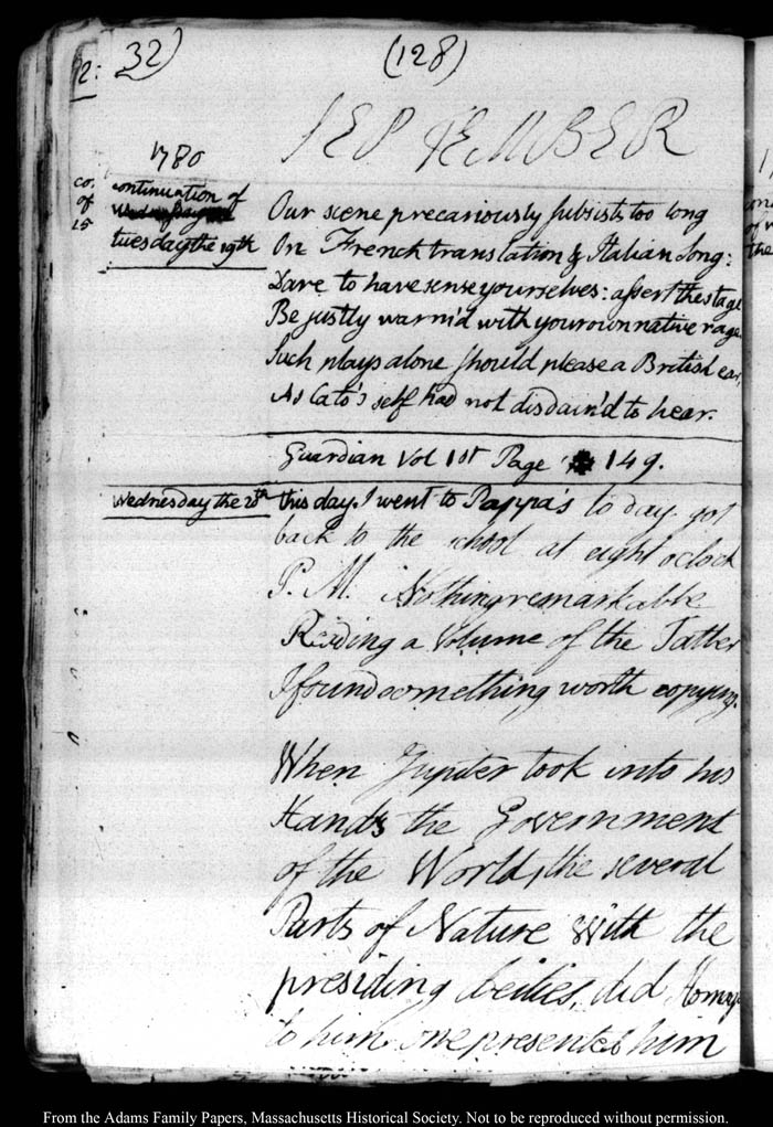 John Quincy Adams diary 3, 25 July 1780 - 30 September 1780, page 128