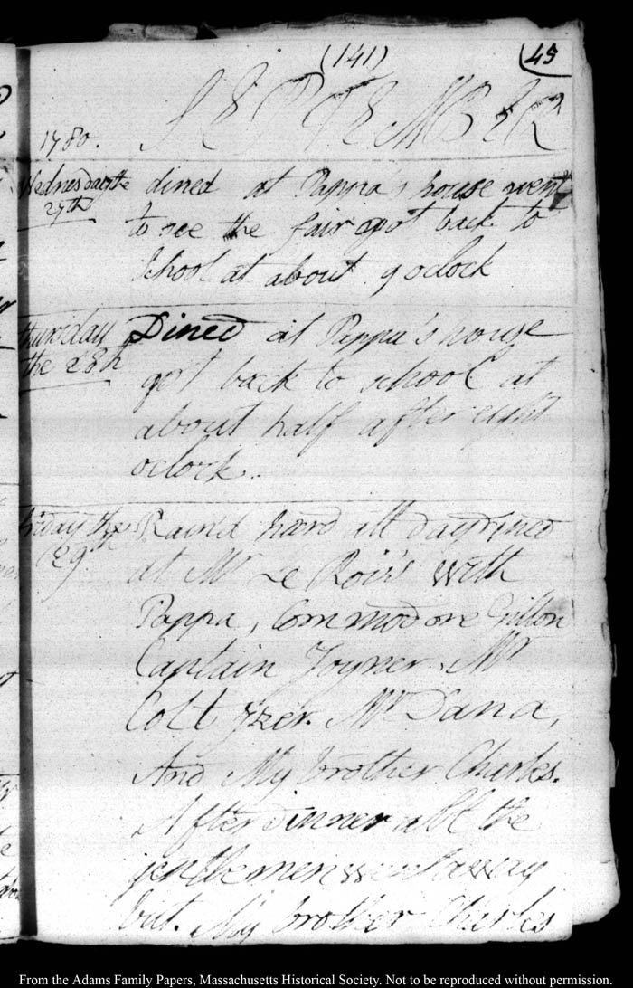 John Quincy Adams diary 3, 25 July 1780 - 30 September 1780, page 141
