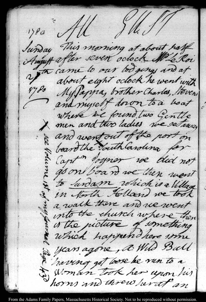 View full, authoritative transcriptions with page images of the diaries at John Quincy Adams Digital Diary part of the Primary Source Cooperative at the MHS.