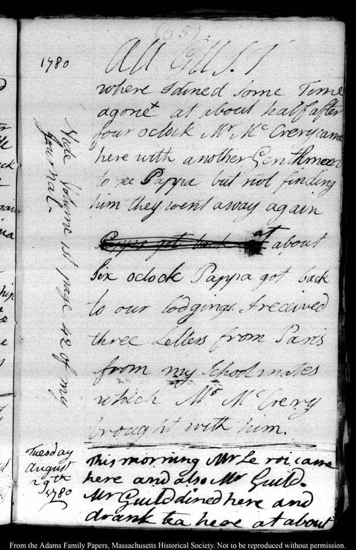 John Quincy Adams diary 3, 25 July 1780 - 30 September 1780, page 65