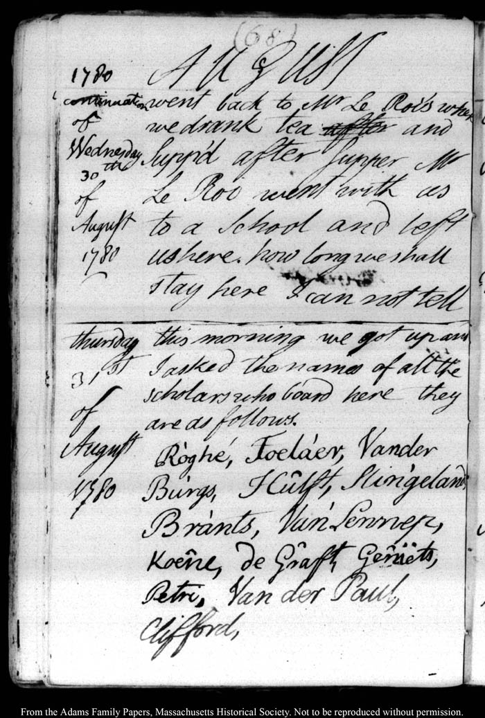 John Quincy Adams diary 3, 25 July 1780 - 30 September 1780, page 68
