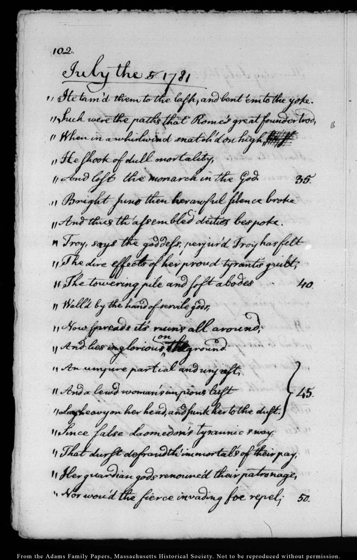 John Quincy Adams diary 4, 9 June 1781 - 27 August 1781, page 102