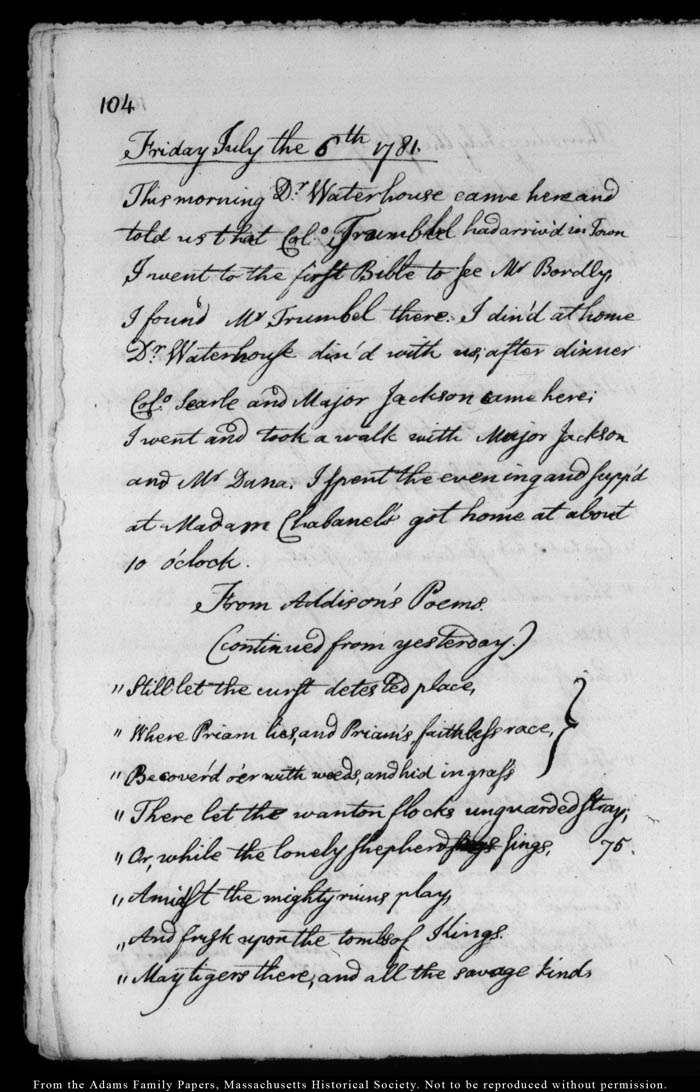 John Quincy Adams diary 4, 9 June 1781 - 27 August 1781, page 104