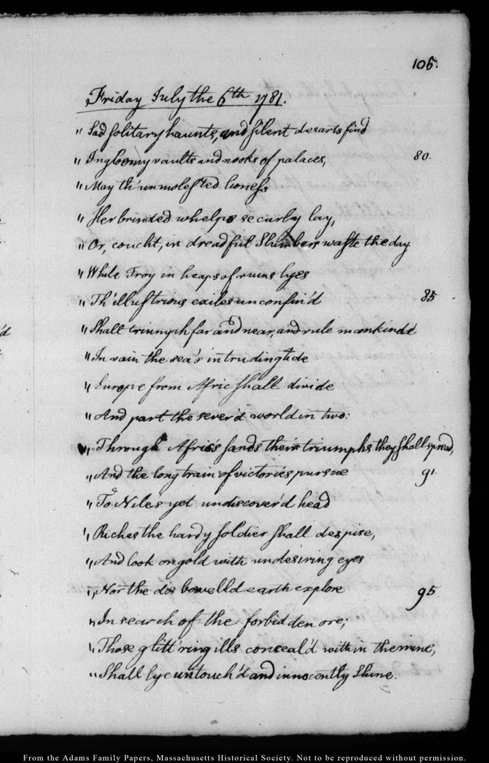 John Quincy Adams diary 4, 9 June 1781 - 27 August 1781, page 105