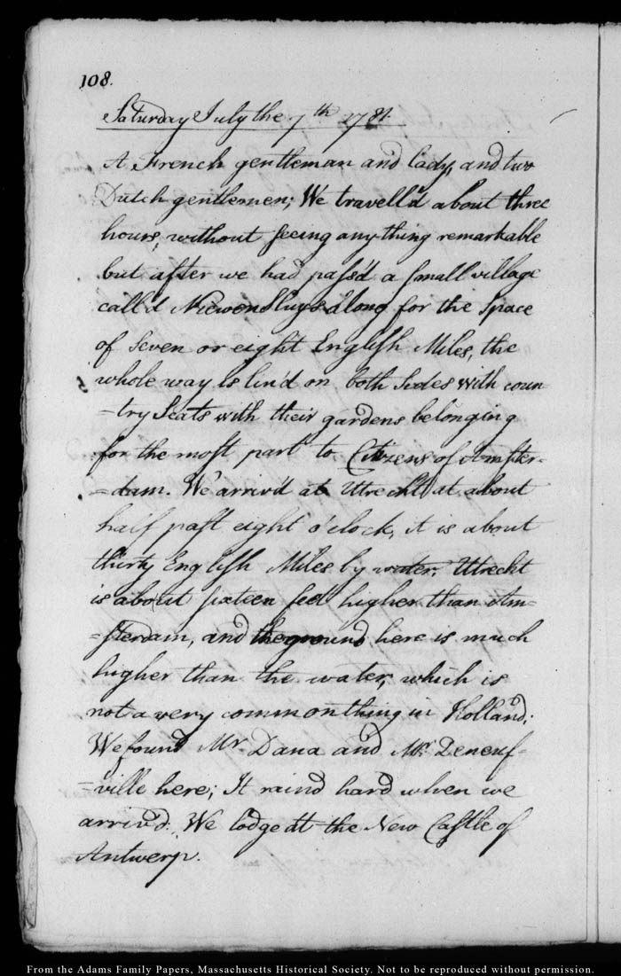 John Quincy Adams diary 4, 9 June 1781 - 27 August 1781, page 108