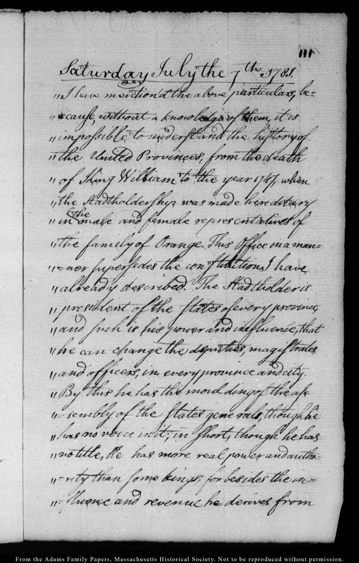 John Quincy Adams diary 4, 9 June 1781 - 27 August 1781, page 111